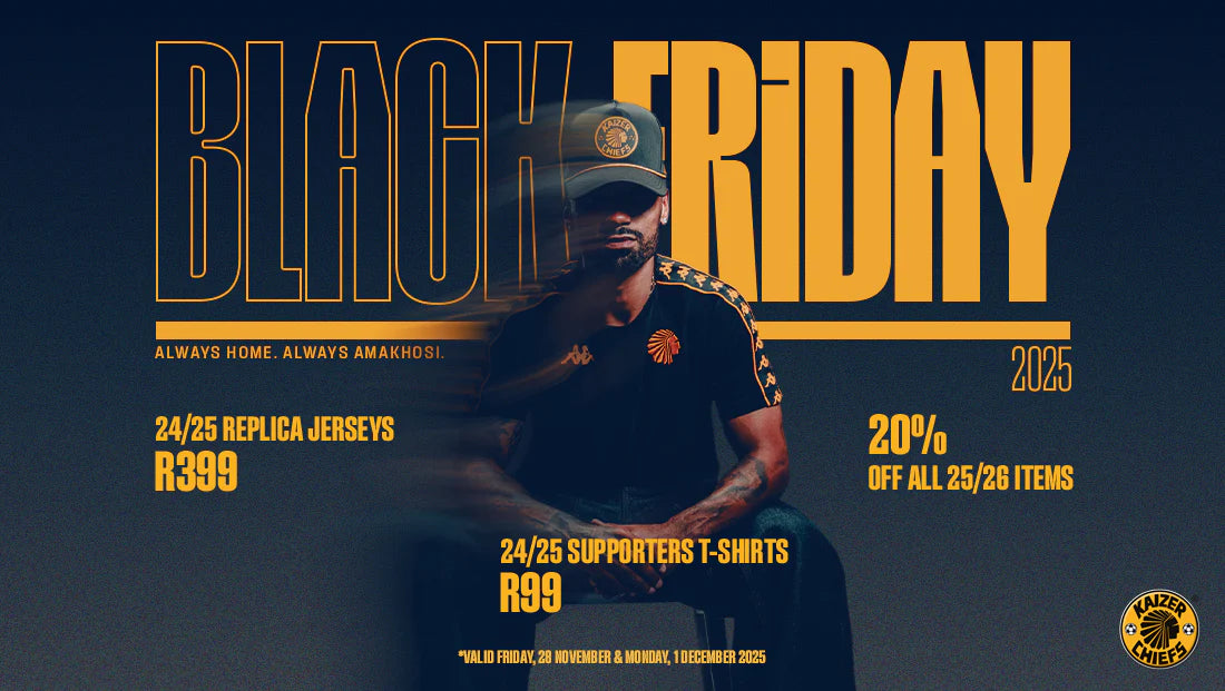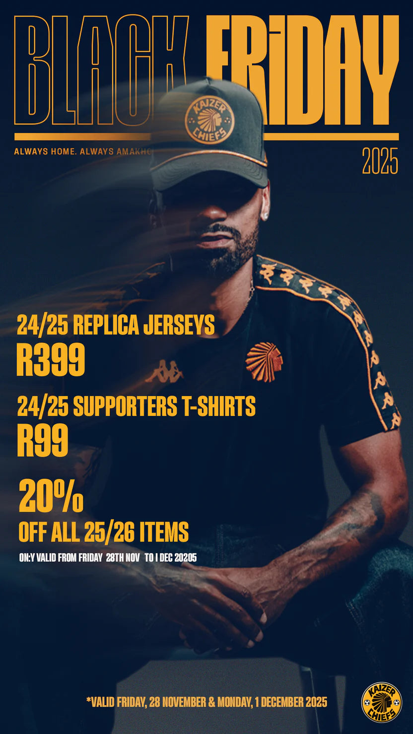 🔥 THE DROP • 24/25 Home & Away Kit: R399 • 24/25 Leisure Tees: R99While stocks last! Once they’re gone, they’re gone.🔥 FRIDAY – BIG FRI-YAY DROPFrom Friday to Monday:20% OFF the entire 25/26 range.Your time to gear up in the latest gold & black.