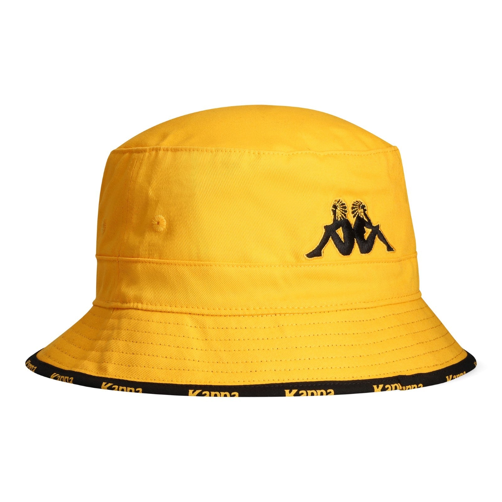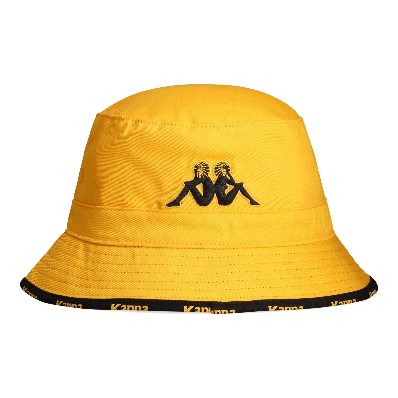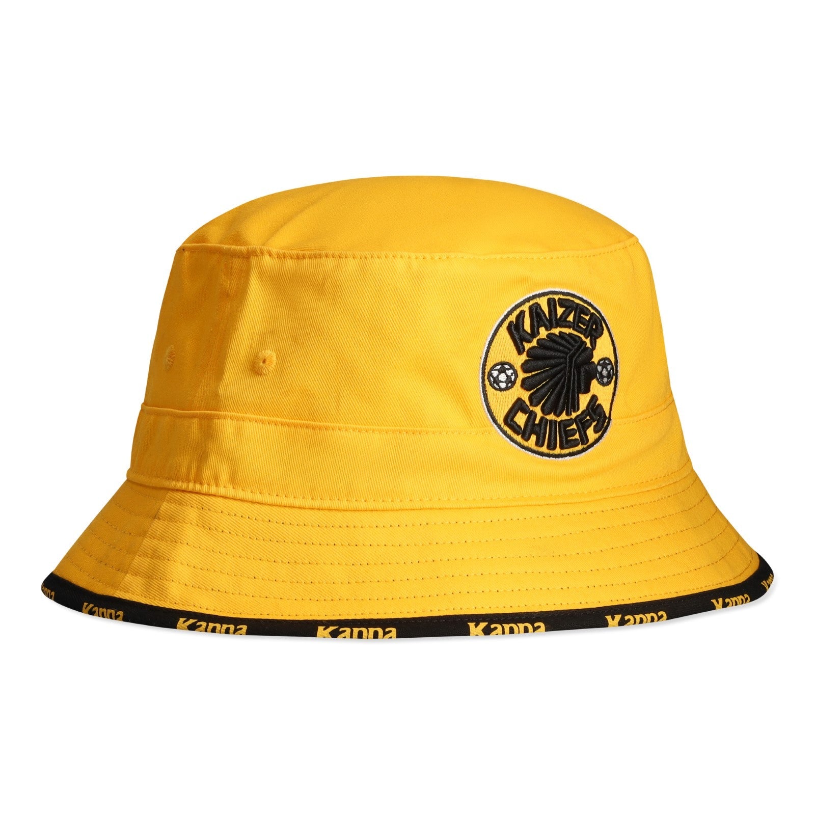 Bucket hat in 100% cotton. Short brim Kappa lettering detail. Kaizer Chiefs and Kappa omini logos embroidered.