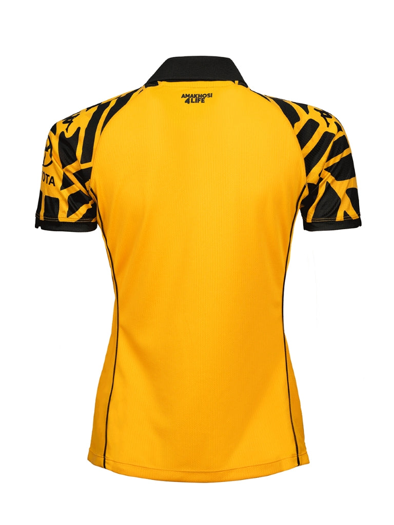 Game shirt KOMBAT™ 2026 for women in textured fabric and with HYDRO-WAY PROTECTION technology. SLIM FIT. Short sleeve, polo collar and inserts on bottom sleeves. Omini logo and sponsor logos on chest and on sleeves applied with heat transfer. Team logo in silicon.